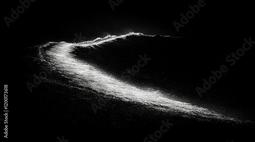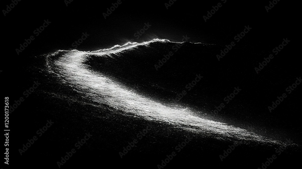 The watermark will not be included on Wall mural.: A monochrome image captures the silhouette of a wave in the moonlit ocean, illuminated by celestial