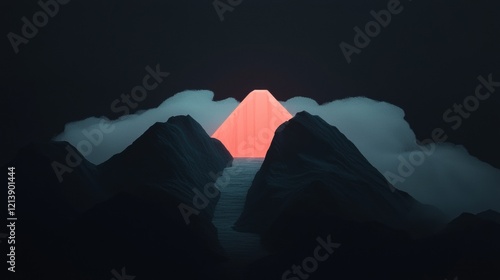 The watermark will not be included on Wall mural.: A mountain range with a red object in the middle