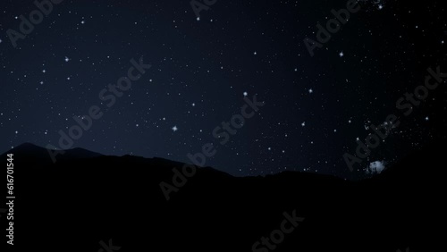 The watermark will not be included on Wall mural.: A movement of stars in the night sky with the view of mountains