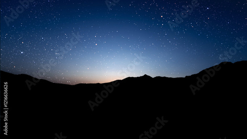 The watermark will not be included on Wall mural.: A movement of stars in the night sky with the view of mountains - -