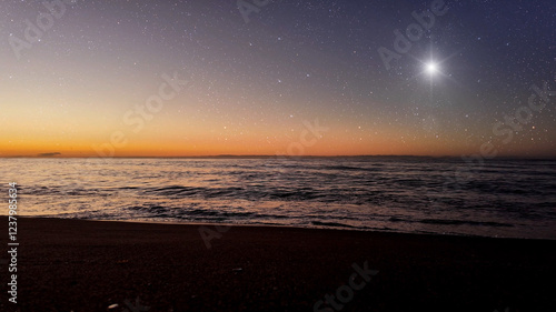 The watermark will not be included on Wall mural.: A movement of stars in the night sky with the view of mountains - -
