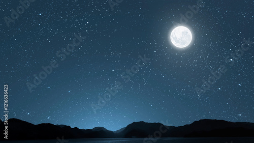 Wall mural a movement of stars in the night sky with the view of mountains..