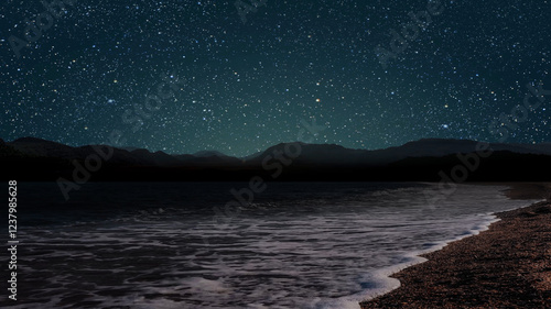 The watermark will not be included on Wall mural.: A movement of stars in the night sky with the view of mountains - -