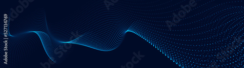 Wall mural a moving digital 3d wave. futuristic dark background with dynamic blue particles. the concept of big