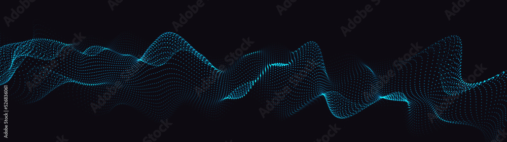 Wall mural a moving digital 3d wave. futuristic dark background with dynamic blue particles. the concept of big