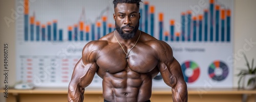 Wall mural a muscular man confidently poses in front of financial graphs displaying distinct persistence and am - Wall murals Wall mural a muscular man confidently poses in front of financial graphs displaying distinct persistence and am - Wall murals