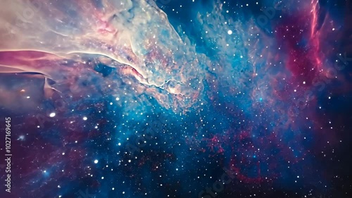Wall mural a nebula with swirling colors of pink, blue, and white against a background of countless stars