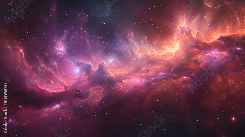 Wall mural a nebula with swirling masses of pinks and purples, interspersed with dark shadows, creating a dynam - Wall murals Wall mural a nebula with swirling masses of pinks and purples, interspersed with dark shadows, creating a dynam - Wall murals