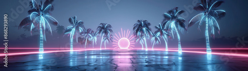 The watermark will not be included on Wall mural.: A neon sign with a circle in the middle and palm trees in the background