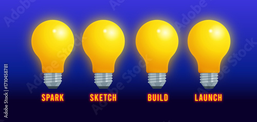Wall mural : A new idea spark turns into a sketch that people build together before they finally launch