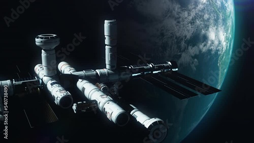 Wall mural a new space station in space orbiting the earth. a concept on the theme of space exploration and tec