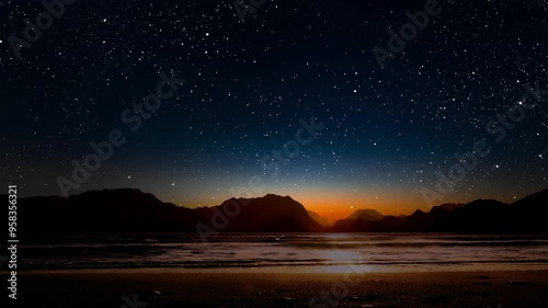The watermark will not be included on Wall mural.: A night sea sky with moon and stars