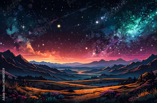The watermark will not be included on Wall mural.: A night sky filled with twinkling stars, distant galaxies, and colorful nebulae vector art illustrat