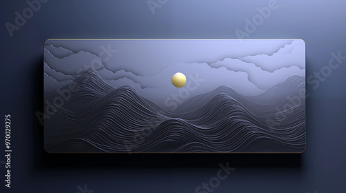 Wall mural : A painting of a mountain range with a sun in the sky - there is space for text -