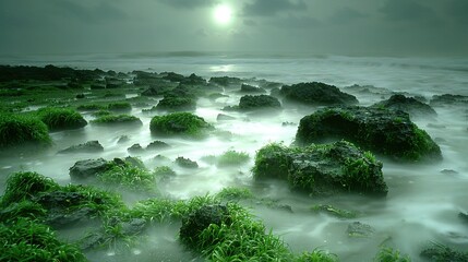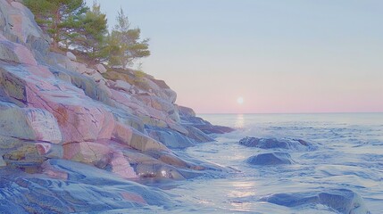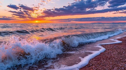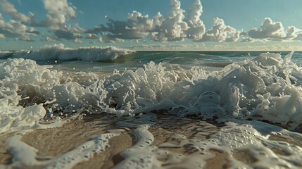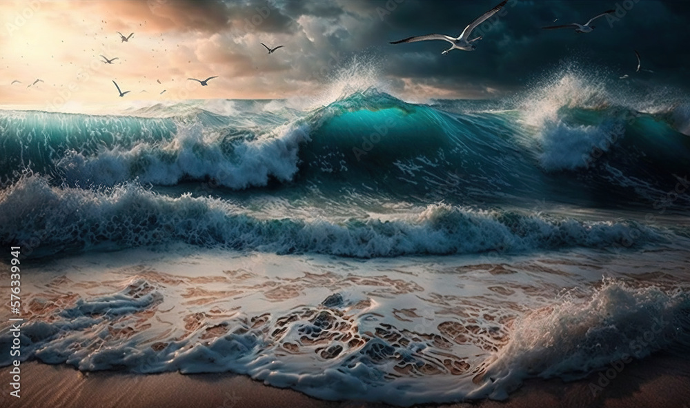 The watermark will not be included on Wall mural.: A painting of waves crashing on a beach with birds flying overhead - generative ai