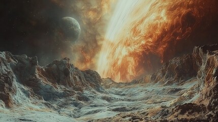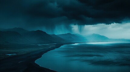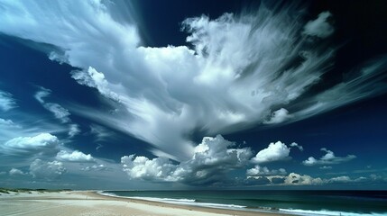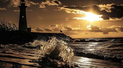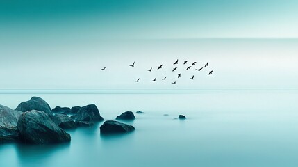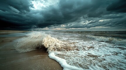 Wall mural a painting of waves crashing on a beach with birds flying overhead. generative ai