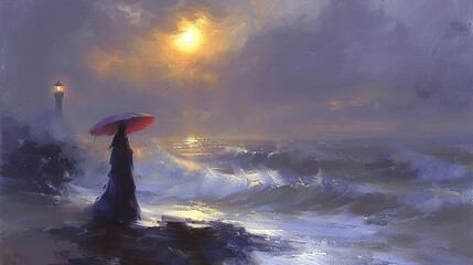 Wall mural a painting of waves crashing on a beach with birds flying overhead. generative ai - Wall murals Wall mural a painting of waves crashing on a beach with birds flying overhead. generative ai - Wall murals
