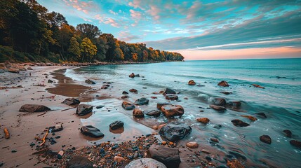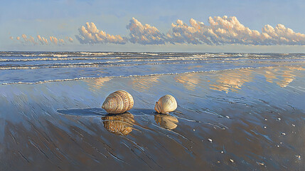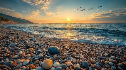 Wall mural : A painting of waves crashing on a beach with birds flying overhead - generative ai