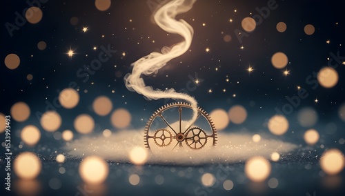 Wall mural a pair of interlocking gears rests on a surface surrounded by a dreamy array of glowing lights. a wi