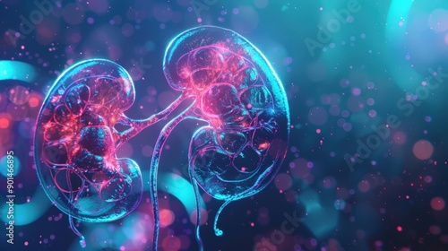 The watermark will not be included on Wall mural.: A pair of kidneys are shown in a blue and red color scheme