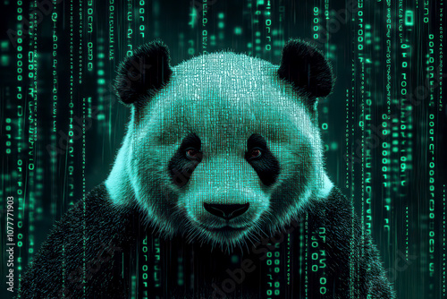 Wall mural a panda bear against a backdrop of code and binary data back ground cybersecurity and digital data p - Wall murals Wall mural a panda bear against a backdrop of code and binary data back ground cybersecurity and digital data p - Wall murals