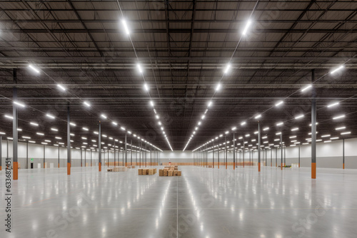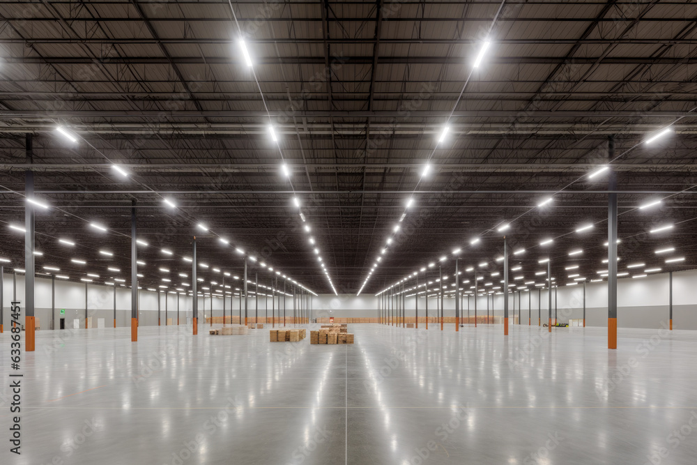 Wall mural : A panoramic shot of an empty warehouse with high ceiling - generative ai