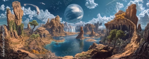 Wall mural a panoramic view of a hidden alien civilization nestled within a crater. - Wall murals Wall mural a panoramic view of a hidden alien civilization nestled within a crater. - Wall murals