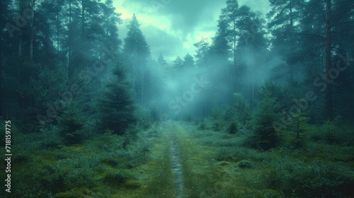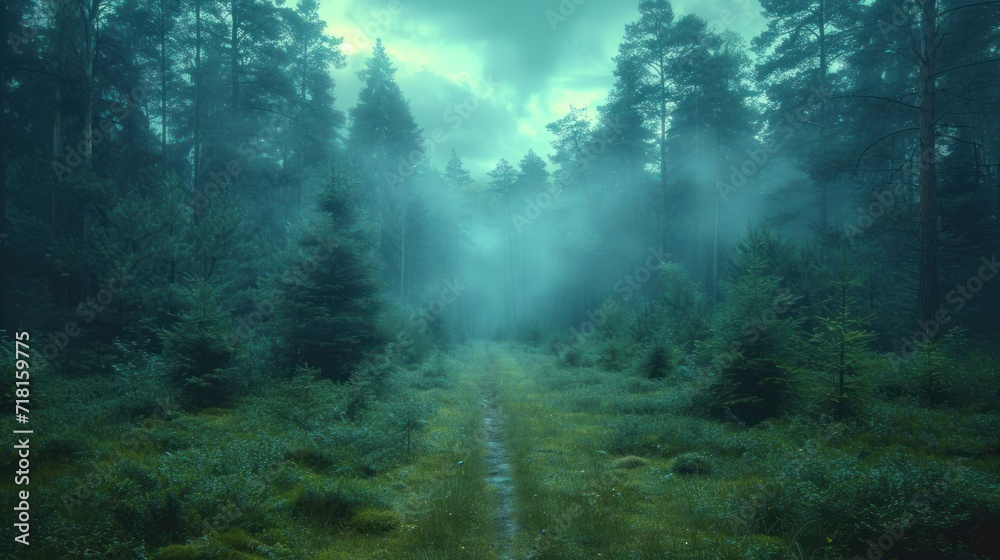 Wall mural a path in the middle of a forest in the middle of a foggy day with trees on both sides of the path a - Wall murals Wall mural a path in the middle of a forest in the middle of a foggy day with trees on both sides of the path a - Wall murals