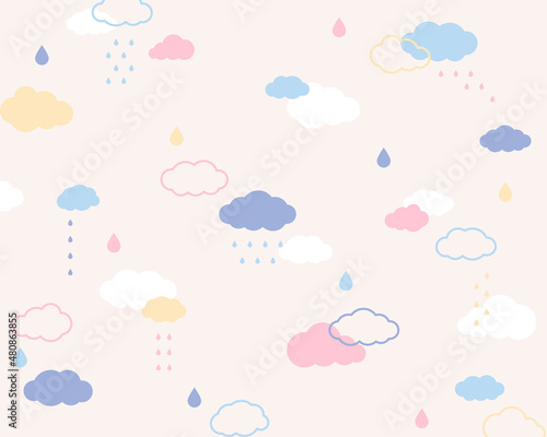 Wall mural : A pattern composed of cute pastel colored clouds - simple pattern design template -