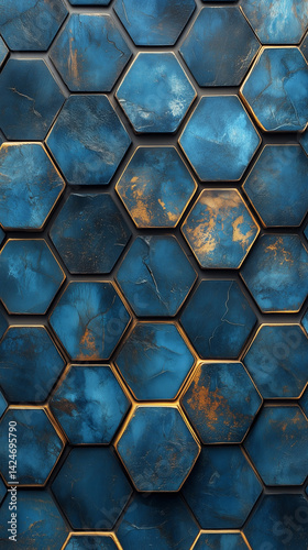The watermark will not be included on Wall mural.: A pattern of intertwined hexagons - yellow on a transparent background