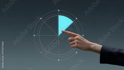 Wall mural a person's hand indicates progress by touching on the pie chart, visually representing percentage. i