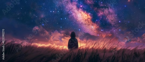 Wall mural a person is standing in a field of tall grass at night - Wall murals Wall mural a person is standing in a field of tall grass at night - Wall murals