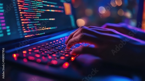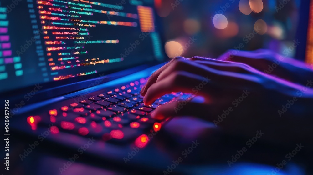 Wall mural : A person is typing on a computer keyboard with a colorful background