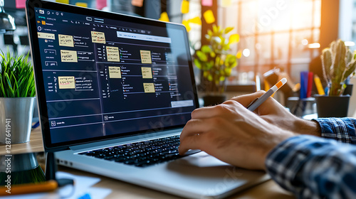 The watermark will not be included on Wall mural.: A person is using a laptop with a yellow sticky note on the screen - generated using ai