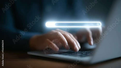 Wall mural : A person types on a laptop, illustrating the concept of ai-driven search technology -