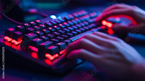 A person typing on a mechanical keyboard with rgb lighting, visible key presses and illuminated keysWall mural