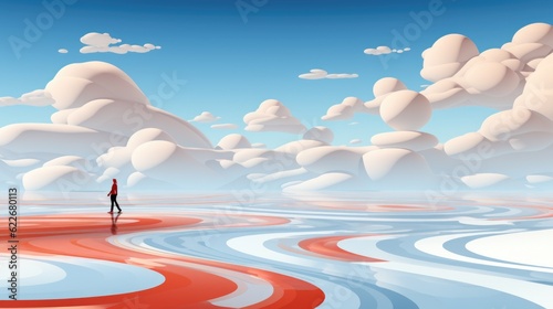 The watermark will not be included on Wall mural.: A person walking across a red and white field - generative ai image -