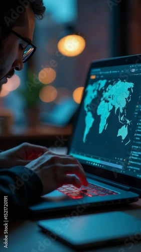 The watermark will not be included on Wall mural.: A person working on a laptop in a quiet setting
