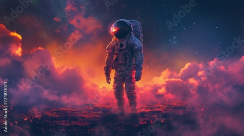Wall mural a photo of the astronaut in the space field, in the style of psychedelic color schemes, warmcore - Wall murals Wall mural a photo of the astronaut in the space field, in the style of psychedelic color schemes, warmcore - Wall murals