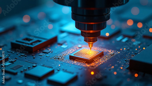 The watermark will not be included on Wall mural.: A photo of the creation of semiconductors using precise equipment and microchips, signifying the dev