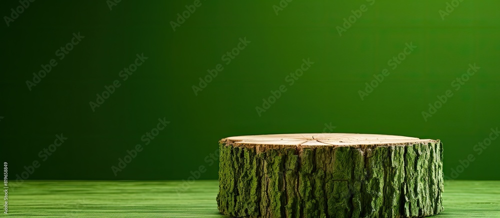 Wall mural : A photo showing a tree stump on a green background isolated with copy space image