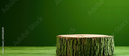 The watermark will not be included on Wall mural.: A photo showing a tree stump on a green background isolated with copy space image