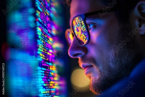 Wall mural a picture of a programmer with a layered effect showing a laptop and programming code. - Wall murals Wall mural a picture of a programmer with a layered effect showing a laptop and programming code. - Wall murals