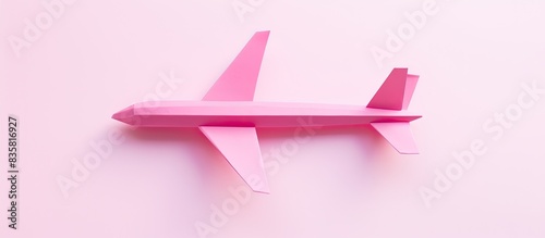 Wall mural a pink paper airplane origami displayed on a white backdrop with a copyspace image. - Wall murals Wall mural a pink paper airplane origami displayed on a white backdrop with a copyspace image. - Wall murals