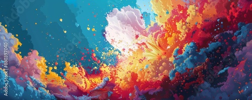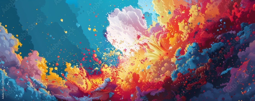Wall mural a pixel art representation of a chaotic explosion of pixelated abstract elements, bursting with pixe - Wall murals Wall mural a pixel art representation of a chaotic explosion of pixelated abstract elements, bursting with pixe - Wall murals