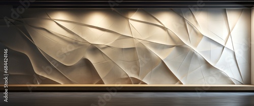 The watermark will not be included on Wall mural.: A play of shadows and light on an abstract 3d wall design composed of intersecting lines and translu