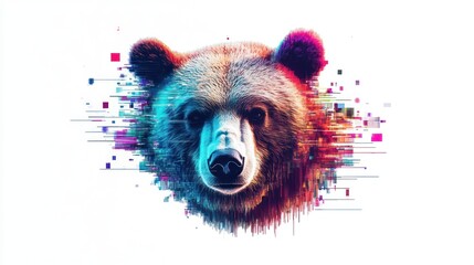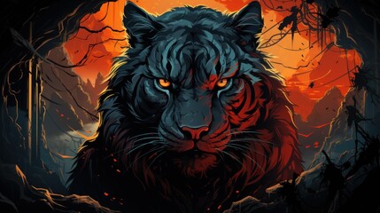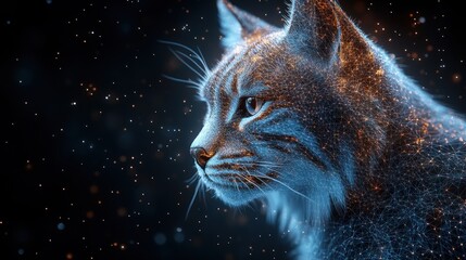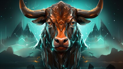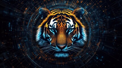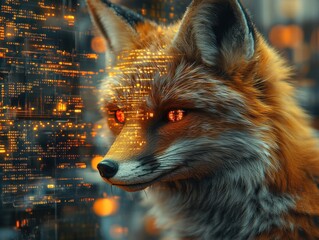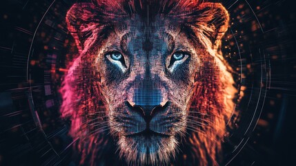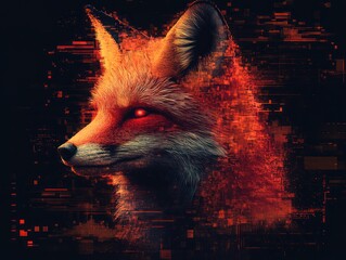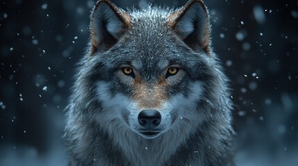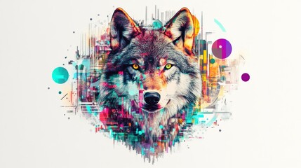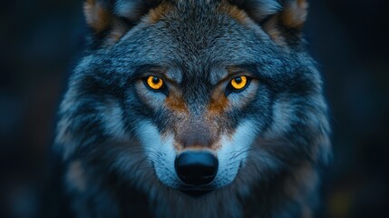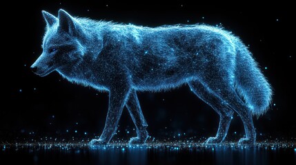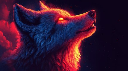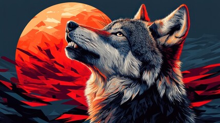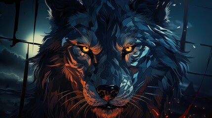 Wall mural a polygonal wolf with glowing eyes stares intensely at the viewer, set against a backdrop of a moonl - Wall murals Wall mural a polygonal wolf with glowing eyes stares intensely at the viewer, set against a backdrop of a moonl - Wall murals
