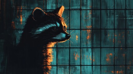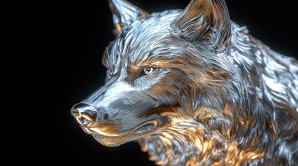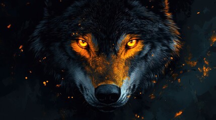 A polygonal wolf with glowing eyes stares intensely at the viewer, set against a backdrop of a moonlWall mural