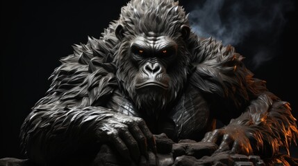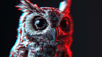The watermark will not be included on Wall mural.: A polygonal wolf with glowing eyes stares intensely at the viewer, set against a backdrop of a moonl