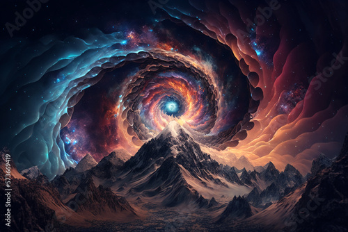 Wall mural a portal to another dimension above mountains - Wall murals Wall mural a portal to another dimension above mountains - Wall murals